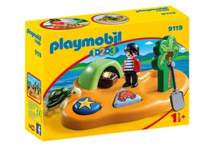 Wyspa piracka 9119. Oto ciekawe i pełne niespodzianek miejsce, zapewniające dzieciom mnóstwo ciekawej zabawy. Wyspa z małym piratem posiada skrytkę na skarb i funkcję sortera, z możliwością dopasowywania zwierząt morskich do form.