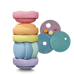 Stapelstein - Zestaw GRIMM'S x Stapelstein - pastel GRIMM’S x Stapelstein® – zestaw, który inspiruje do twórczej zabawy Dźwięki, kolory i ruch – nauka przez zabawę Zestaw GRIMM’S x Stapelstein® to zaproszenie do świata swobodnej, sensorycznej zabawy dla dzieci od 3. roku życia. Drewniane krążki z otworami w różnych rozmiarach, kolorowe kule i lekkie elementy Stapelstein® Original tworzą nieskończone możliwości eksperymentowania z dźwiękiem, ruchem i równowagą. To połączenie designu i pedagogiki inspirowane filozofią Bauhausu. Zestaw zawiera 6x element Stapelstein® Original (pastel) 3x drewniany krążek z otworem (różne rozmiary) 3x drewniana kula (różne rozmiary) Rekomendowany wiek Od 3.