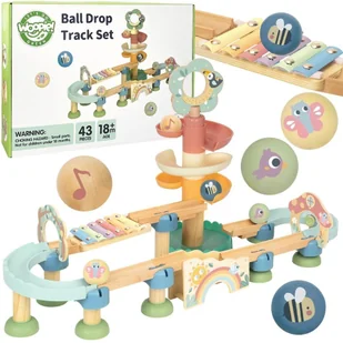 - - Elementy muzyczne – wbudowany mini instrument (cymbałki) pozwala dziecku usłyszeć dźwięki podczas toczenia się kulek, co wzbogaca doświadczenie zabawy