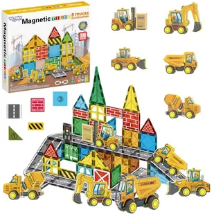 Charakterystyka - Zestaw konstrukcyjny z magnetycznymi klockami i pojazdami budowlanymi - 30 elementów w różnych kształtach i kolorach - Klocki magnetyczne o wymiarze 7,5 × 7,5 cm - 5 różnych pojazdów budowlanych z wolnymi kołami - Łatwe i szybkie łączenie elementów dzięki magnesom - Wykonane z trwałych i bezpiecznych materiałów - Wymiary opakowania: 32 × 29 × 6 cm Zestaw zawiera - 12 × kwadrat - 2 × trójkąt - 4 × trójkąt - 4 × droga - 2 × okna - 1 x brama - 5 × pojazdy budowlane (koparka, spychacmm z, betoniarka, wywrotka, ładowarka) Zabawka rozwija - Wyobraźnię przestrzenną i kreatywność - Zdolności manualne oraz logiczne myślenie - Umiejętność konstruowania i planowania - Koordynację oko–ręka i sprawność manualną - Wspólną zabawę i współpracę z innymi dziećmi