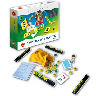 Zawartość pudełka: 72 tabliczki z liczbami, 36 tabliczek znaków, 55 kat liczb, worek, klepsydra, instrukcja.