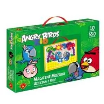 Magiczne Mozaiki Angry Birds Rio Ucieczka z Rio\" to kreatywna zabawa edukacyjna dla dzieci, młodzieży i dorosłych. Do Waszej dyspozycji oddana zostaje plansza z mnóstwem otworów i 10 ilustracji przedstawiających Angry Birds. Łącząc różnej wielkości elementy i ilustracje układajcie egzotyczne zwierzęta i krajobrazy Brazylii. Po wykonaniu ilustracji wystarczy, że wyjmiecie elementy i możecie zacząć od nowa. Do zestawu dołączony jest album zawierający ponad 32 inspiracje.