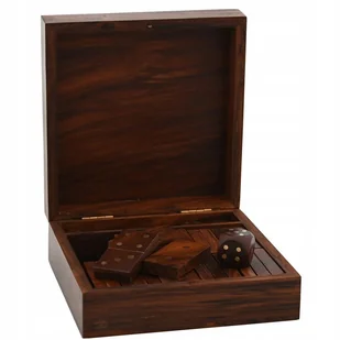 Komplet klasycznego domino z kośćmi, w stylowym pudełku. Wykonane są z drewna. Posiadają złote wykończenia. Idealny pomysł na prezent. Wymiar klocka: 5cm x 2...
