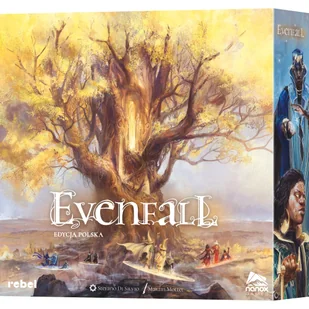 Evenfall (edycja polska). Gra planszowa. Nastał czas zmierzchu dotychczasowego świata Kruszą się granice rzeczywistości i budzą się siły nadprzyrodzone Drzewo Świata otwiera swe pełne blasku bramy prowadzące do nieznanych i odległych regionów Wysyłaj tam wiedźmy ze swojego klanu, aby odkrywały nowe. . .