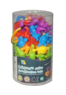 W skład zestawu wchodzi 48 różnorodnych elementów: kolorowe zwierzątka, 6 barwnych miseczek oraz 2 pęsety. Taka różnorodność elementów sprawia, że zabawa jest nie tylko edukacyjna, ale i atrakcyjna dla dzieci.