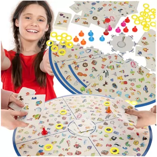 GRA RODZINNA POSZUKIWACZE ZNAJDŹ OBRAZEK Niech wygra najlepszy!Szukasz gry rodzinnej, która zapewni mnóstwo zabawy zarówno Twoim dzieciom, jak i Tobie? Brawo, właśnie ją znalazłeś!Gra Znajdź Obrazek to fantastyczna gra na spostrzegawczość, która będzie wyzwaniem dla każdego gracza - niezależnie od wieku. A na czym ona polega? Jak sama nazwa wskazuje, na poszukiwaniu obrazków. Ale nie myśl, że będzie tak łatwo - w grze są zasady! Należy ułożyć planszę, która będzie tworzyć duże koło z ogromną ilością kolorowych obrazków Sześćdziesiąt kart należy przetasować i umieścić je na środku planszy Zadaniem graczy w każdej rundzie jest znalezienie obrazków z karty kładąc na nich kolorowe wskaźniki. Należy też pamiętać o upływającym czasie, który jest mierzony za pomocą klepsydry. Za każdy dobrze odnaleziony obrazek, gracz otrzymuje pierścienie punktów.
