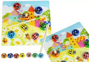 Biedronki na magnes to zestaw, który składa się z planszy, wędki zakończonej sznureczkiem z magnesem oraz 7 różnokolorowych biedronek, na których grzbiecie również umieszczono magnes. Plansza z wesołym obrazkiem przedstawiającym wiosenny krajobraz posiada wyżłobione pola, w których umieszczone są biedronki. Już samo wzornictwo i przyjemne kolory przyciągną wzrok malucha, zachęcając go do zabawy. Na czym polega gra Biedronki na Magnes$314 Jej zasady nie są określone -- dzięki temu rozwiązaniu Twój maluch rozwinie swą wyobraźnię i kreatywność, tworząc co raz to nowe zabawy. Próby schwytania biedronek poprawią zdolność do skupienia i zręczność dziecka, gwarantując rozwój zdolności manualnych.