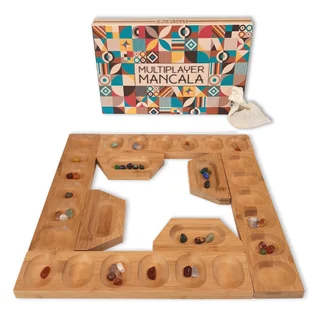 Mankala wieloosobowa (mulitplayer mancala) - logiczno-strategiczna gra wykonana z drewna bambusowego Zestaw nadaje się do wielu wersji gry - m.in oware, awal...