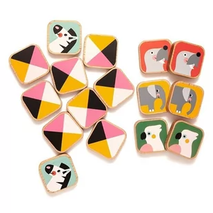 Gra memo wykonana z drewna bukowego ze wspaniałymi malowanymi ilustrowanymi zwierzętami. Gra zawiera 16 elementów, więc mamy 8 par różnych zwierząt do znalezienia i dopasowania. Gra jest zapakowana w bardzo ładne pudełko upominkowe i ma w środku drukowaną bawełnianą torbę do przechowywania drewnianych elementów po zakończeniu gry. Zaprojektowany przez Ilse WeisfeltWykonany z drewna bukowego i pomalowany bezpieczną farbą wodną. Materiał: drewno bukoweWYMARYWymiar 1 klocka 4.