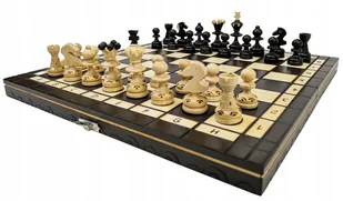 Drewniane szachy Perełka SZACHOWNICA drewniana, wypalana, składana na pól. Wymiar szachownicy rozłożonej: 34.5 x 34.5 x 4.5 cm FIGURY drewniane, obciążone, w...