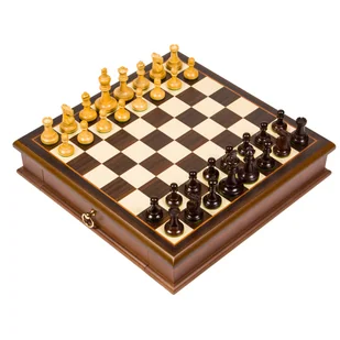 Elegancki zestaw szachowy od światowej sławy włoskiej pracowni Italfama. Drewniana szachownica o kompaktowym formacie 32 cm idealnie pasuje do stołu lub komo...
