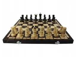 SZACHY DREWNIANE TRADYCYJNE POLSKIE 31x31 OPIS: Wysokiej jakości tradycyjne szachy drewniane polskiej produkcji. Posiadają wypalaną szachownicę, piękne drewniane figury oraz eleganckie wkładki z drugiej strony szachownicy, co pozwoli na chowanie figur w jej wnętrzu. Figury toczone i rzeźbione z wysokiej jakości drewna, posiadają filc na spodzie, co zapobiega rysowaniu się szachownicy. Szachy to ponadczasowa gra strategiczna, która pozwala na rozwijanie umiejętności logicznego myślenia, idealna zarówno dla młodszych, jak i starszych pasjonatów gier planszowych.