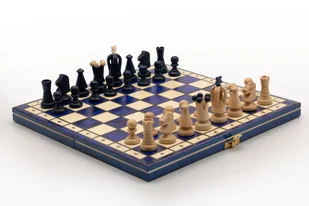 Szachy Królewskie intarsjowane druk niebieskie/dąb-brzoza//producent