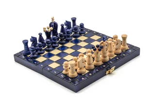 Szachy Królewskie mini niebieskie/ szachy drewniane/duże figury/ producent