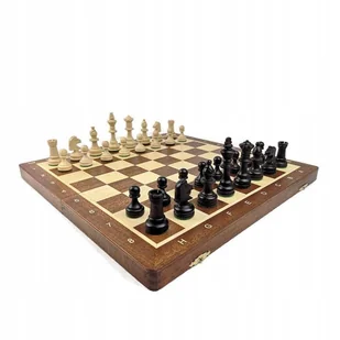 Szachy turniejowe nr 4 intarsjowane w kolorze mahoniu Figury szachowe drewniane nr 4 to figury o klasycznym, turniejowym kształcie Staunton, które w nieco wi...