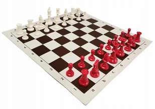 Przedmiotem tej aukcji jest ZESTAW SZACHOWY "KOLOROWA SZACHOWA KLASA" z figurami w kolorze biało - czerwonym. 1. Figury plastikowe Staunton nr 6 w woreczku p...