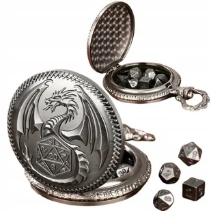Unikalny zegarek kieszonkowy dla fanów RPG! Metalowe pudełko z detalami 3D w motywie kości RPG skrywa 7 mini kostek RPG. Niezastąpiony na sesjach Dungeons & ...