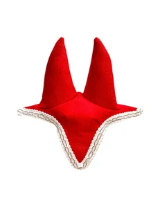 Nauszniki dla Hobby Horse wykonane z filcu w kolorze czerwonym wykończone ozdobną tasiemką