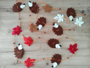 Zawieszka z Filcu motyw leśny Zawieszka z filcu z jeżykami i jesiennymi liśćmi o długości 170 cm