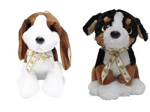 Maskotka Piesek z kokardką duży 03785 mix Maskotka Piesek w kolorze biało-brązowym, ma śliczne błyszczące oczy zdobione brokatem, oraz wstążeczkę zawiązaną n...
