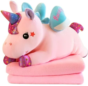 Maskotka Przytulanka Pluszowy Jednorożec Z Kocem 160 x 110 cm Różowy 55cm