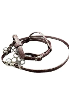 Ogłowie hackamore flower z eko-skóry dla hobby horse A3. Brązowe.