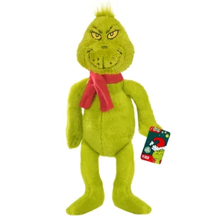 Oryginalny Pluszak Grinch Świąteczna Maskotka Maskotka wykonana z miękkiego materiału z dłuższym włosiem. Ma wyszywane elementy twarzy. Grinch ma przyszyty czerwony szalik.