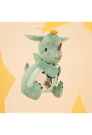 Przytulanka aktywizująca z lusterkiem „A ku-ku!” z kolekcji Smok Joe belgijskiej marki Lilliputiens to niebanalne, miękkie źródło rozrywki i nauki dla ciekawskich maluszków. Ma postać jasnozielonego smoka z szerokim tułowiem i dużym bezpiecznym lusterkiem na brzuszku. Smok ma spore uszka, skrzydełka, sterczącą czuprynkę, kraciasty róg na nosie, długie łapki i miękkie nóżki. W łapkach i oczach znajdują się ukryte magnesy, dzięki którym można bawić się z maluszkiem w „a ku-ku”. Wokół lusterka znajdują się trzy sensoryczne naszywki z ilustracjami – różnymi z obu stron, aby uczyć maluszka pojęcia lustrzanego odbicia.