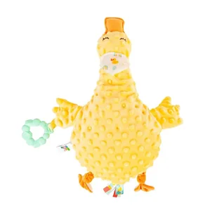 Przytulanka Kaczuszka. Zabawka. Żółciutka kaczuszka to wymarzona przytulanka każdego bobasa! Jest milusia i urocza, a jej skrzydełko zdobi gryzaczek, który przyniesie ulgę obolałym dziąsłom ząbkującego dziecka Zabawka posiada szeleszczące skrzydełko, chusteczkę na szyi i metki doszyte w miejscu. . .
