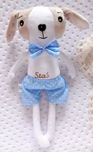 Wyjątkowa PRZYTULANKA PIESIO z możliwością wykonania haftu z imieniem dla dziecka lub metryczką! Brzuszek oraz główka zostały wykonane z gładkiego, niesamowicie miłego w dotyku minky. Reszta częsci ciała wyko ...