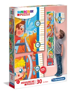 Puzzle Measure Me 30 elementów - Sos Firman Puzzle Clementoni towarzyszą dziecku w każdej fazie jego wzrostu, pomagając mu rozwijać zręczność manualną i zmysł obserwacji. Jakość materiałów i wyjątkowa technika druku gwarantują, że ilustracje bedą zawsze piękne, żywe i błyszczące, a zabawa nigdy się nie znudzi. Po ułożeniu puzzle MEASURE ME zmieniają się w miarkę wzrostu. Zapisz na nich daty i patrz jak rośnie Twoje dziecko.