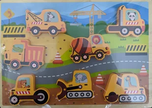 DREWNIANE PUZZLE XL ZWIERZĘTA W SAMOCHODACH PRZY BUDOWIE DROGI MINI MATTERS
