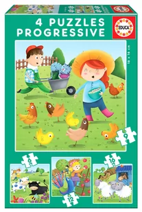 Educa 17145, gospodarstwo rolne, zestaw puzzli 4 w 1 dla dzieci od 3 lat, farma