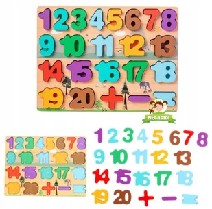 PUZZLE DREWNIANE UKŁADANKA SORTER Z KOLOROWYMI CYFERKAMI. UKŁADANKA WYKONANA Z GRUBEGO I TRWAŁEGO DREWNA. ZESTAW ZAWIERA: ☑️ PODSTAWKĘ ☑️ 20 KOLOROWYCH CYFEREK ☑️ 3 ZNAKI MATEMATYCZNE WYMIARY ZABAWKI: 30 x 20 x 1 cm GRUBE ELEMENTY PUZZLI Z UKŁADANIEM PORADZĄ SOBIE NAWET NAJMŁODSZE DZIECI.