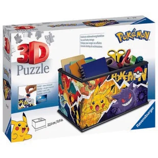 Puzzle 216 elementów 3D Szkatułka PokemonTwórz wyjątkowe konstrukcje 3D z puzzlami 3D od firmy Ravensburger! Odkryj nowy, trójwymiarowy sposób układania puzzli ich elementy zostały wykonane ze sztywnego tworzywa sztucznego, które pozwala na utrzymanie się konstrukcji bez użycia kleju. Ułożone przedmioty nie rozwarstwiają się, a puzzle mocno trzymają się siebie. Na wewnętrznej stronie każdego puzzla nadrukowany jest numer, dzięki czemu składamy kulę według kolejności elementów. Materiał użyty do produkcji klocków jest łatwy w czyszczeniu, wystarczy użyć wilgotnej szmatki. Obowiązkowa pozycja dla wszystkich fanów Pokemonów, którzy lubią łamigłówki i szukają miejsca na swoje drobiazgi! To niezwykły produkt łączący w sobie możliwość zabawy w układanie przestrzennych puzzli i praktyczny pojemnik na przybory szkolne, biżuterię czy inne prawdziwe skarby.