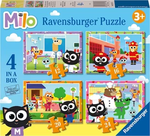 Cechy produktu: Puzzle z serii Milo 4 układanki w pudełku Dla dzieci 3+ Wysoka jakość wykonania 12, 16, 20 i 24 elementy Rozwijają spostrzegawczość i cierpli...