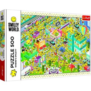 Puzzle 500 Gdzie jest Smiley?TREFL ➡️ Zabawki / Puzzle / 500 elementów ✔️ Puzzle Trefl składające się z 500 elementów. ➡️✔️ Kategoria wiekowa: 10+Wydawnictwo/Producent: TreflRok wydania: pudełko,268x400 mm Dodatkowe informacje.