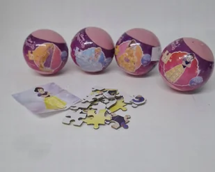 Disney Princess Puzzle w kuli10x15cm Wymiary układanki: ok. 10x15 cm Średnica kuli: 5,5 cm Uwaga! Kule ze wzorem układanki wysyłane są losowo.