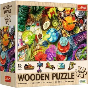 Puzzle drewniane 501 el. Kolorowe koktajle Trefl. Puzzle. Seria puzzli 500+ 1 elementów jest idealna dla wszystkich miłośników układanek, pozwoli stworzyć obrazek o wymiarach 37,5 x 25,4 cm przedstawiający egzotyczną ucztę, letnie przysmaki i napoje Układanka została wykonana z drewna, a opakowanie. . .