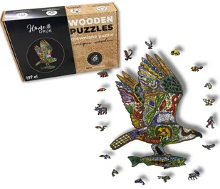 Puzzle Drewniane dla dzieci i dorosłych Rybołów OspreyUkładanie puzzli to nie tylko świetna zabawa, ale także doskonały sposób na relaks i ćwiczenie umysłu. Pozwala ono oderwać się od codziennych spraw i skupić na tworzeniu pięknych obrazów kawałek po kawałku. To również doskonała rozrywka dla całej rodziny czy grupy przyjaciół, która sprzyja integracji i wspólnej zabawie. Podczas układania puzzli nasz mózg pracuje intensywnie, angażując zarówno umiejętności wzrokowe, jak i logiczne. Każdy kawałek naszych puzzli ma unikalny kształt, pośród których znajdziesz intrygujące elementy nawiązujące swoim wzorem do całości układanki - z sylwetkami zwierząt i charakterystycznych kształtów.
