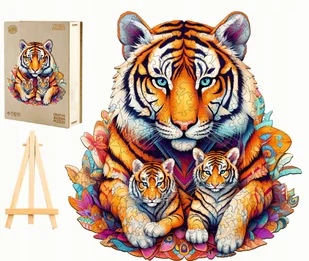 DREWNIANE PUZZLE DLA DOROSŁYCH DUŻE RODZINA TYGRYSÓW ✅ Puzzle zapakowane są eleganckie drewniane pudełko. ✅ Rozmiar puzzli to 35X33,2cm ✅ Ilość elementów: 27...