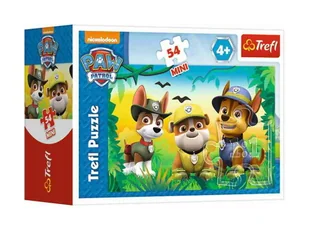 Układanka po ułożeniu tworzy piękny kolorowy obrazek przedstawiający bohaterów z bajki Psi Patrol na Safari ( Tracker, Rubble i Chase ).