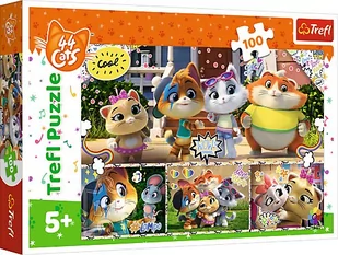 Wyjątkowe puzzle dla dzieci przedstawiają Zgraną ekipę przyjaciół, czyli uśmiechniętych bohaterów bajki animowanej 44 Koty. Zestaw puzzli składa się ze 100 elementów i umożliwia ułożenie barwnego obrazka o wymiarach 410 x 278 mm. Wiek: 5+