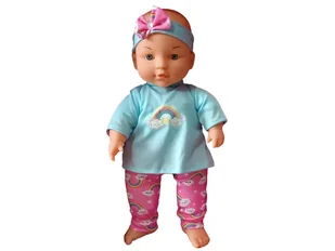 ELEFUN interktywny bobas z akcesoriami Interaktywny bobas z akcesoriami. Po naciśnięciu na brzuszek bobas wydaje 6 realistycznie brzmiących efektów dźwiękowych: gaworzy, cmoka, chichocze, płacze, a także wypowiada pierwsze słowa: "mama" i "dada". Lalka jest miekka i przyjemna w dotyku.