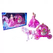 Kareta Z Lalką Oraz Koniem Chodzącym Różowa Zabawka Dla Dziewczynek