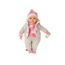 Lalka bobas z polskim dźwiękiem (45cm). Przepiękna lalka bobas z dźwiękiem to świetna zabawka dla dzieci, dostarczająca mnóstwo radości i wspaniałej zabawy. Laleczka odznacza się uroczą, niemowlęcą buzią. Ubrana jest w szarą, ciepłą bluzę z kapturem, dwuczęściowy dresik, czapkę i skarpetki. Lalka. . .