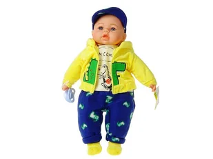 Lalka bobas 45cm mówi, śpiewa żołto niebieskie ubranko 7326