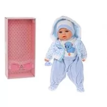 Lalka od firmy ADAR to uroczy bobasek, który z pewnością zachwyci najmłodsze dzieci. Lalka wyróżnia się efektami dźwiękowymi. Mówi i śpiewa po polsku. Ma duże, niebieskie oczy z długimi rzęsami. Bobas ubrany jest w polarowy dresik: