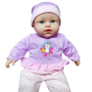 Lalka Dorotka w czapeczce i ubranku ze zwierzątkiem. Śpiewa piosenki: "Pieski małe dwa", "Jesteśmy jagódki", "My jesteśmy krasnoludki" oraz mówi, wita się, prosi żeby ją przytulić i ukołysać do snu, zachęca do zabawy, pyta o obiadek itp. Wysokość lalki 39 cm. Zawiera baterie CR2032.