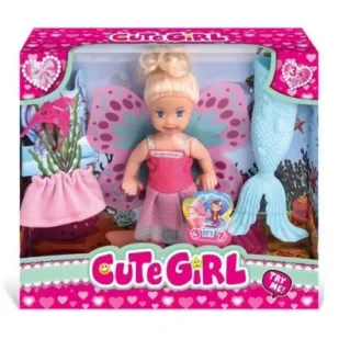 Mini laleczka wróżka syrenka 2w1 daje dwie możliwości zabawy, dzięki czemu dziecko może kreować swoją laleczkę według upodobania. Syreni ogon pozwala przekształcić laleczkę w syrenkę, a kolorowe skrzydła umożliwiają zamianę we wróżkę. Dwie spódniczki pozwalają na zmienianie strojów laleczki, a korona dodaje laleczce królewskiego wyglądu. Zabawka przeznaczona dla dzieci od 3 lat. Produkt zapakowany w kartonowe opakowanie z przezroczystym okienkiem.
